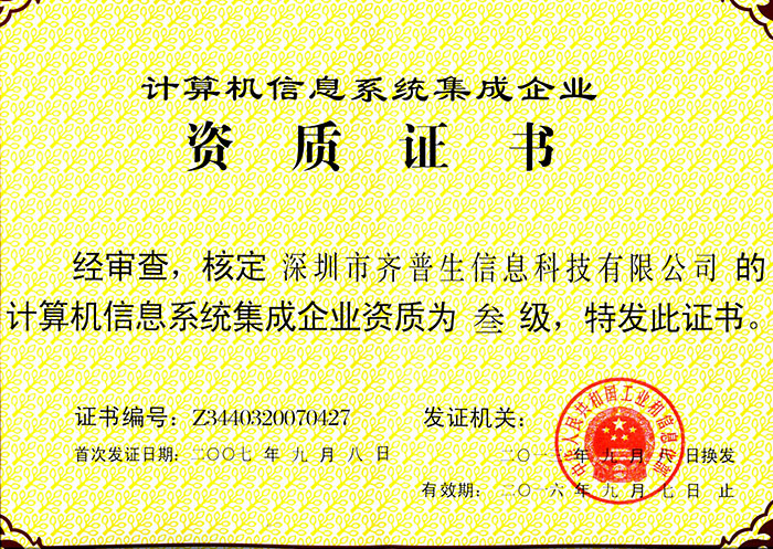 計算機信息系統集成企業資質證書(三級)